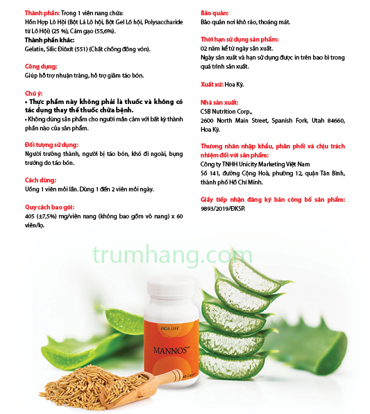 Sản phẩm Unicity Bios Life Mannos là sản phẩm giúp tăng cường hệ miễn dịch cho cơ thể . Sản phẩm được sản xuất từ cây lô hội với nhiều nguồn dinh dưỡng cao nhằm thúc đẩy hệ thống miễn dịch gia tăng sản xuất ra các cytokine , qua đó nó giúp các tế bào miễn dịch khác chống lại bệnh tật gây ra bởi các virus, vi khuẩn, và ký sinh trùng.