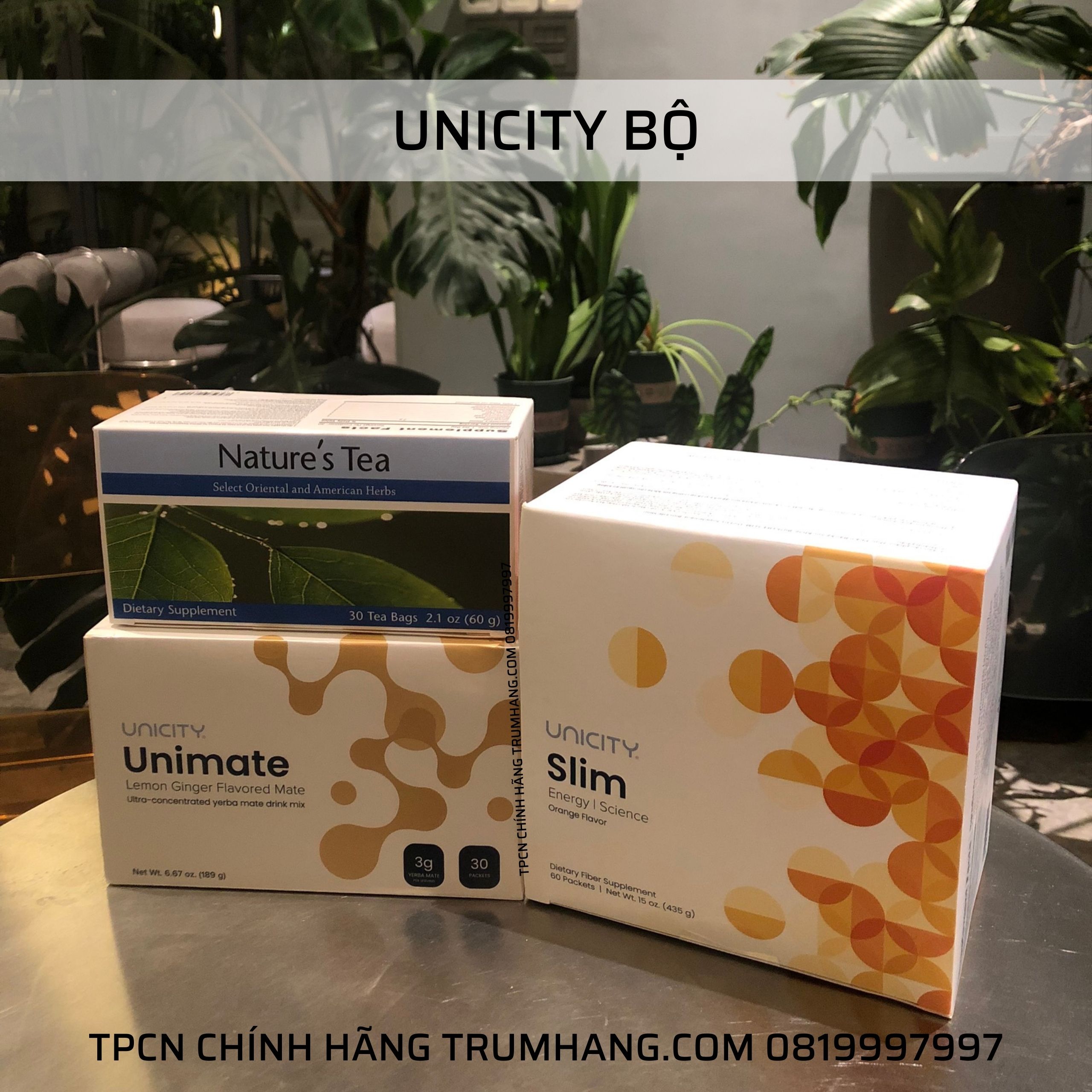 Quy cách : 3 hộp: 1 Slim + 1 Unimate chanh gừng + 1 Trà ruột Nature’s Tea Unicity