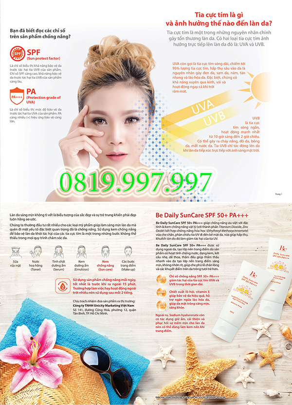 - SPF 50++ PA+++: Chỉ số chống nắng giảm tác hại của tia cực tím UVA và UVB trong thời gian dài.