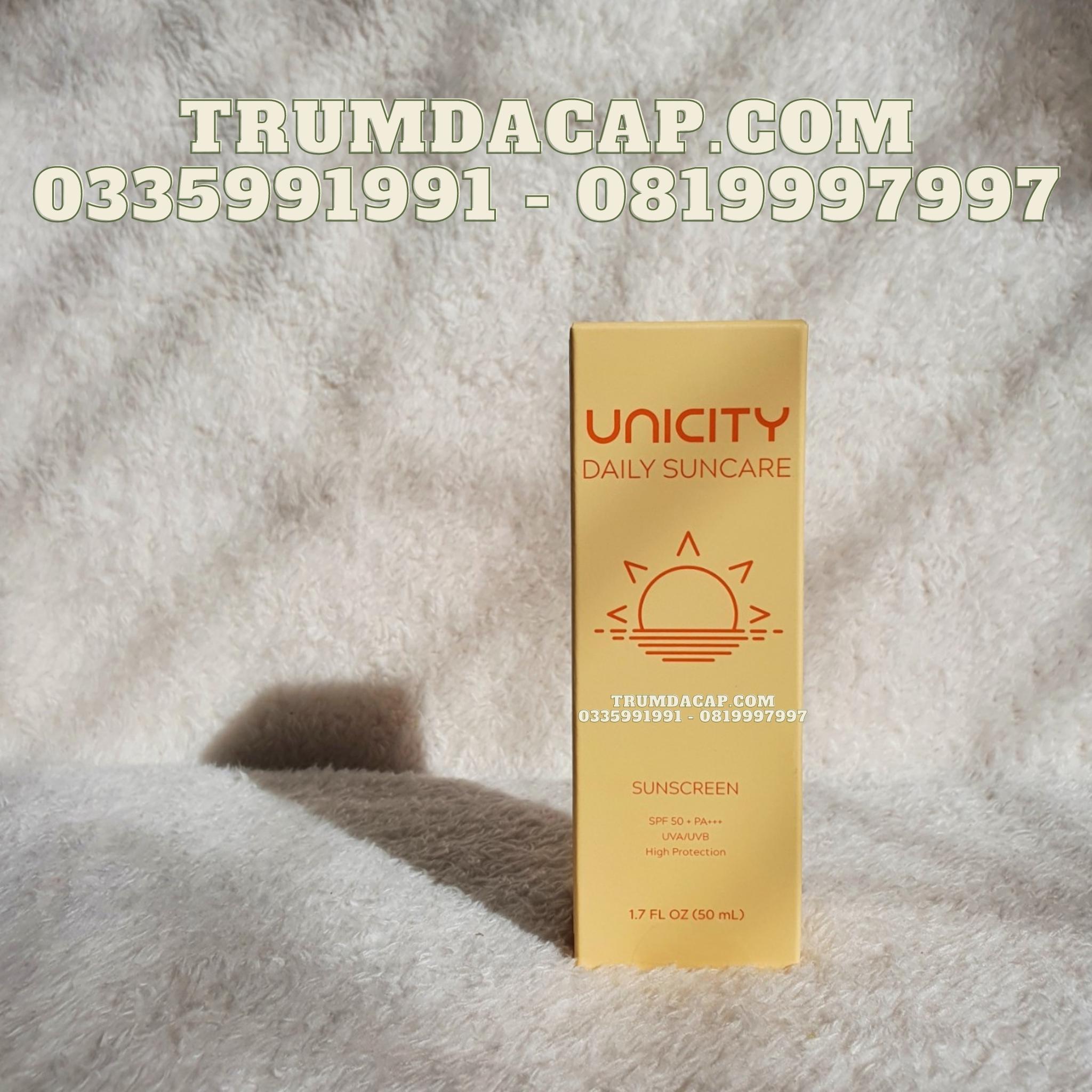 Unicity Daily Suncare giúp chống nắng ưu việt với đặt tính là kem chống nắng vật lý (với thành phần titanium Dioxite, Zinc Oxide), kết hợp với chống nắng hóa học (Ethylhexyl Methoxy Cinnammate) vừa che chắn, phản chiếu tia UV đi đến bề mặt da, vừa giúp hấp thụ, khuếch tán. Do đó, kem chống nắng Unicity Daily Suncare làm giảm tác hại của tia UV.