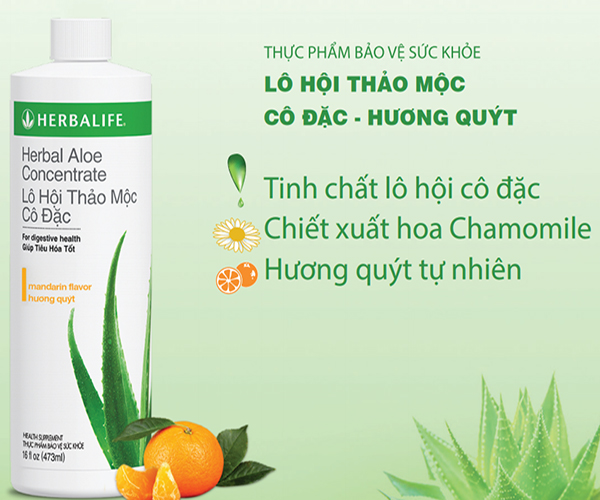 Lô hội thảo mộc cô đặc Herbal Aloe Concentrate - hỗ trợ chăm sóc sức khỏe tiêu hóa bằng sản phẩm Lô Hội cô đặc truyền thống của Herbalife và được sản xuất bởi công nghệ tiên tiến, hiện đại của Hoa Kỳ, là thực phẩm chức năng mang lại rất nhiều lợi ích cho hệ tiêu hóa có tác dụng nhanh chóng làm lành các vết thương trong hệ tiêu hóa, làm giảm mùi hôi khó chịu của cơ thể. Ngoài ra, sản phẩm này còn là thực phẩm hỗ trợ đắc lực cho những người đang có nhu cầu tăng cân, kiểm soát cân nặng.