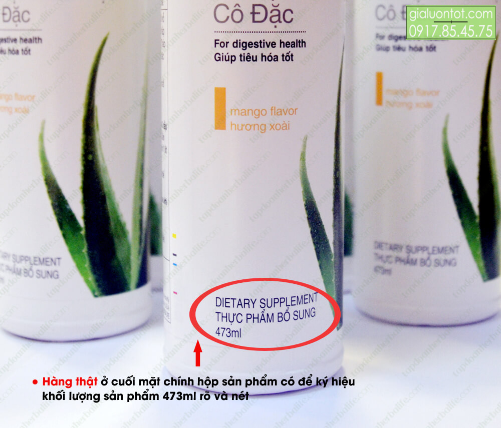 Trà lô hội thảo mộc cô đặc Herbalife Aloe Concentrate. Phía sau chữ E phải có chức R trong vòng tròn mới là hàng thật.