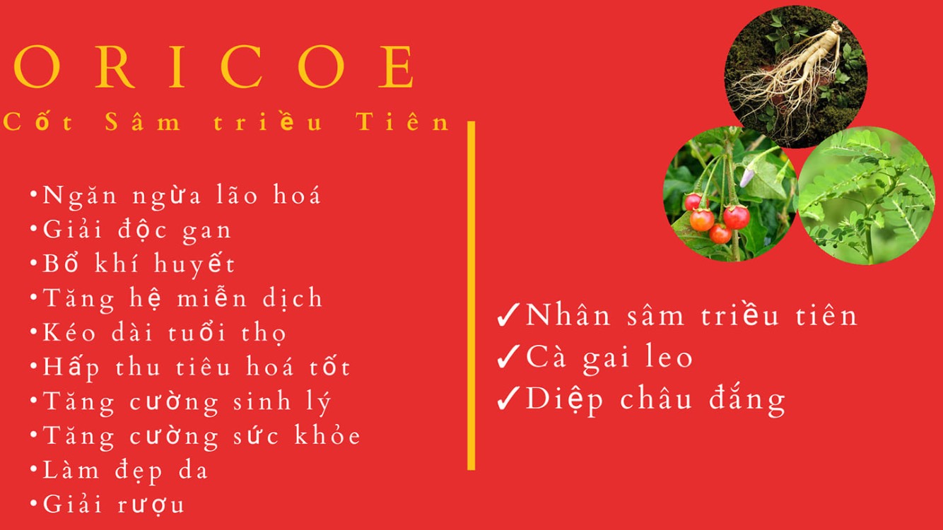 Với hệ thần kinh trung ương rượu ngâm Triều Tiên mang giúp làm hưng phấn thần kinh, trí óc được minh mẫn, giúp làm tăng cường được hệ tinh thần và chống lại những sự mệt mỏi của cơ thế, từ đó làm tăng cường trí nhớ. Sử dụng rượu sâm hàn quốc rất tốt cho hệ thần kinh, tuy nhiên sử dụng với liều lượng nhỏ vừa phải làm tăng cường trí tuệ nhưng nếu sử dụng với liều vượt quá cho phép sẽ gây ra một số những hiện tượng như quá bình tĩnh. 8. Một số những tác dụng khác mà Nước cốt sâm Triều Tiên Oricoe mang đến cho người dùng Sử dụng Nước cốt sâm Triều Tiên Oricoe giúp chống lão hóa và làm đẹp da hiệu quả,. Người dùng thường xuyên sẽ giúp làm cải thiện được làn da và ngăn ngừa được lão hóa da, giữ cho da dẻ được hồng hào, trắng sáng mịn màng, duy trì được tuổi thanh xuân một cách hiệu quả nhât Một công dụng tuyệt vời nữa mà Nước cốt sâm Triều Tiên Oricoe mang đến cho người dùng là giúp hỗ trợ điều trị cho những người mắc căn bệnh ung thư. Bên cạnh đó Nước cốt sâm Triều Tiên Oricoe còn giúp hỗ trợ sự hoạt động tuần hoàn của não bộ, hỗ trợ điều trị căn bệnh đau đầu,giúp kích thích cho người dùng ăn uống ngon miệng hơn nhất là những người cơ thể mệt mỏi, gầy yếu, xanh xao Ngoài ra tác dụng của Nước cốt sâm Triều Tiên Oricoe còn mang đến là làm giảm đi các triệu chứng như mất máu, những người có thần kinh bị suy nhược, những người có cơ thể gầy yếu, thường hay chán ăn, thấp khớp, hay bị cảm lạnh và sốt. Đồng thời Nước cốt sâm Triều Tiên Oricoe còn giúp làm kéo dài tuổi thọ cho người sử dụng.