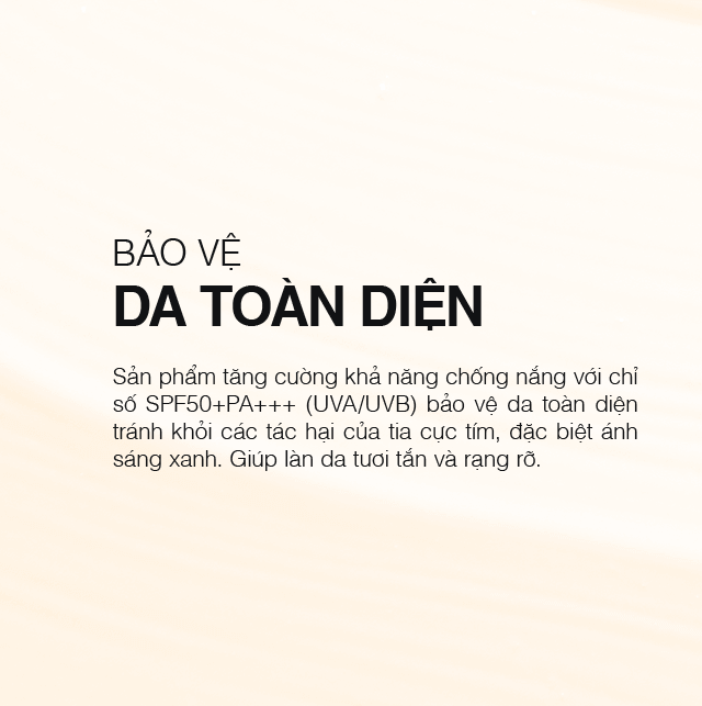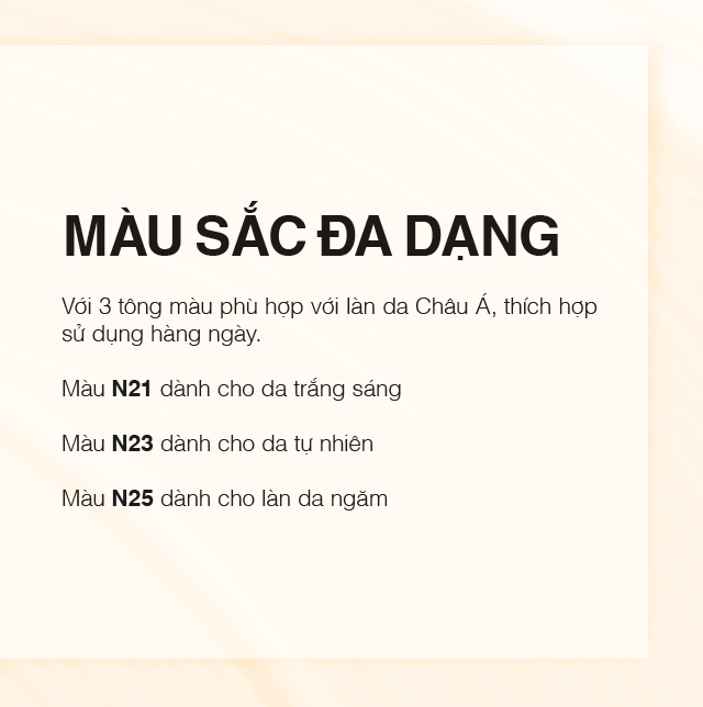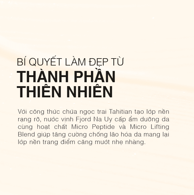 Công thức dạng nước dễ dàng thấm vào da giúp nhanh chóng tạo được lớp nền mỏng mịn, tự nhiên, rạng rỡ, mang lại lớp nền nhẹ nhàng suốt ngày dài, đặc biệt che phủ tốt nếp nhăn, lỗ chân lông to và da bị lão hóa.