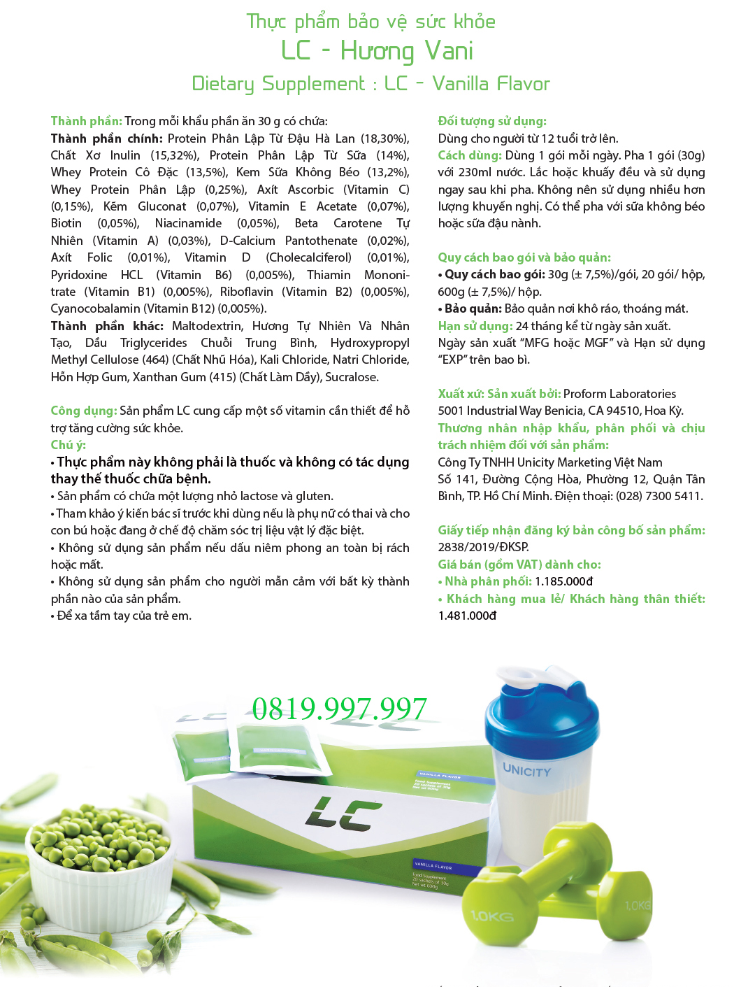 SẢN PHẨM DINH DƯỠNG LC – HƯƠNG VANI UNICITY
