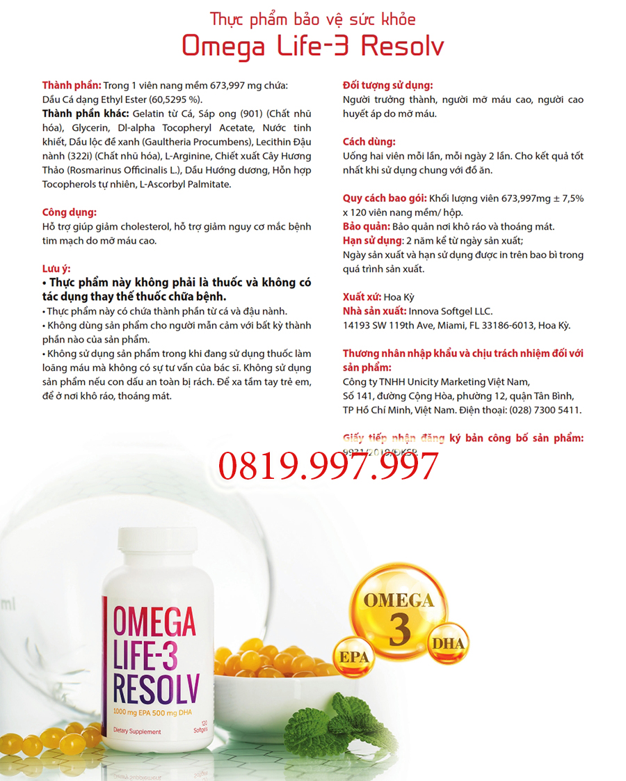 Tác dụng của OmegaLife-3 Resolv của Unicity