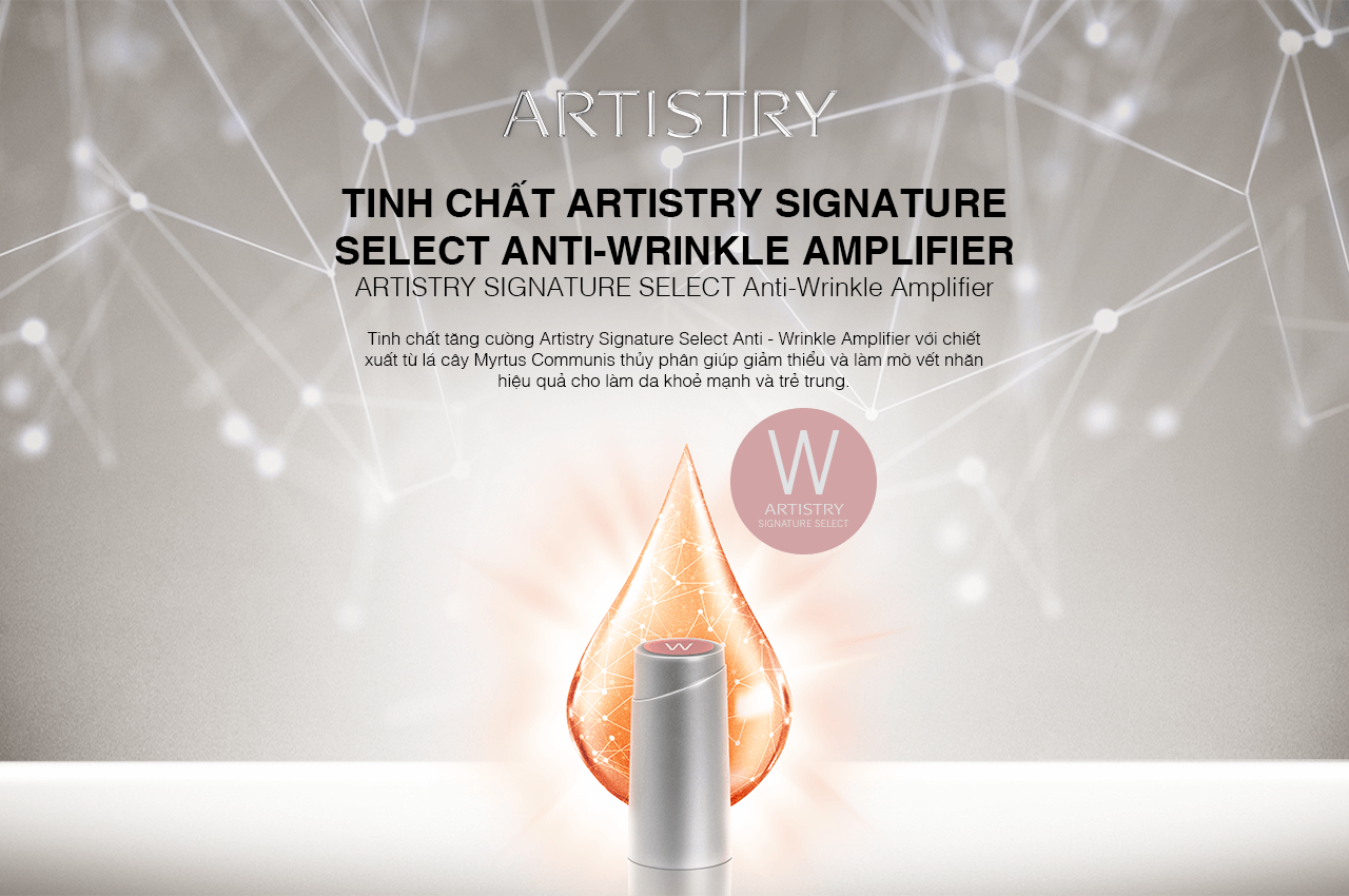 Thời gian không còn là khắc tinh của nhan sắc phái đẹp khi Artistry đã phát triển thành công tinh chất Signature Select Anti - Wrinkle Amplifier được “cá nhân hoá” dành riêng cho làn da có nếp nhăn. Nhờ công nghệ chức năng mới Line Diminishing giúp tăng cường cấu trúc da khoẻ mạnh hơn, làm mờ và giảm thiểu sự xuất hiện của các nếp nhăn, làn da được duy trì mịn màng, căng tràn sức sống như tuổi đôi mươi.