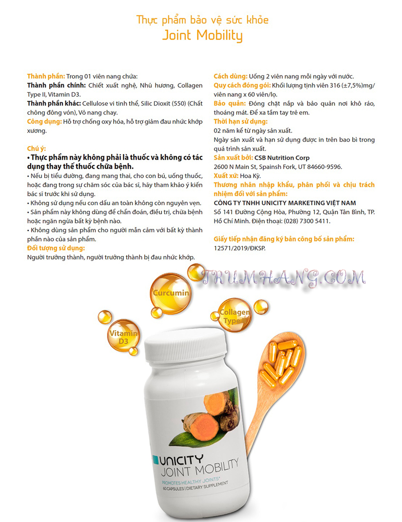 Sản phẩm Joint Mobility của Unicity giúp hỗ trợ giảm đau xương khớp, cung cấp dưỡng chất giúp bồi bổ và tăng tái tạo sụn khớp. Joint Mobility giúp bảo vệ sụn, khớp không bị khô, cải thiện chức năng của hệ xương khớp.