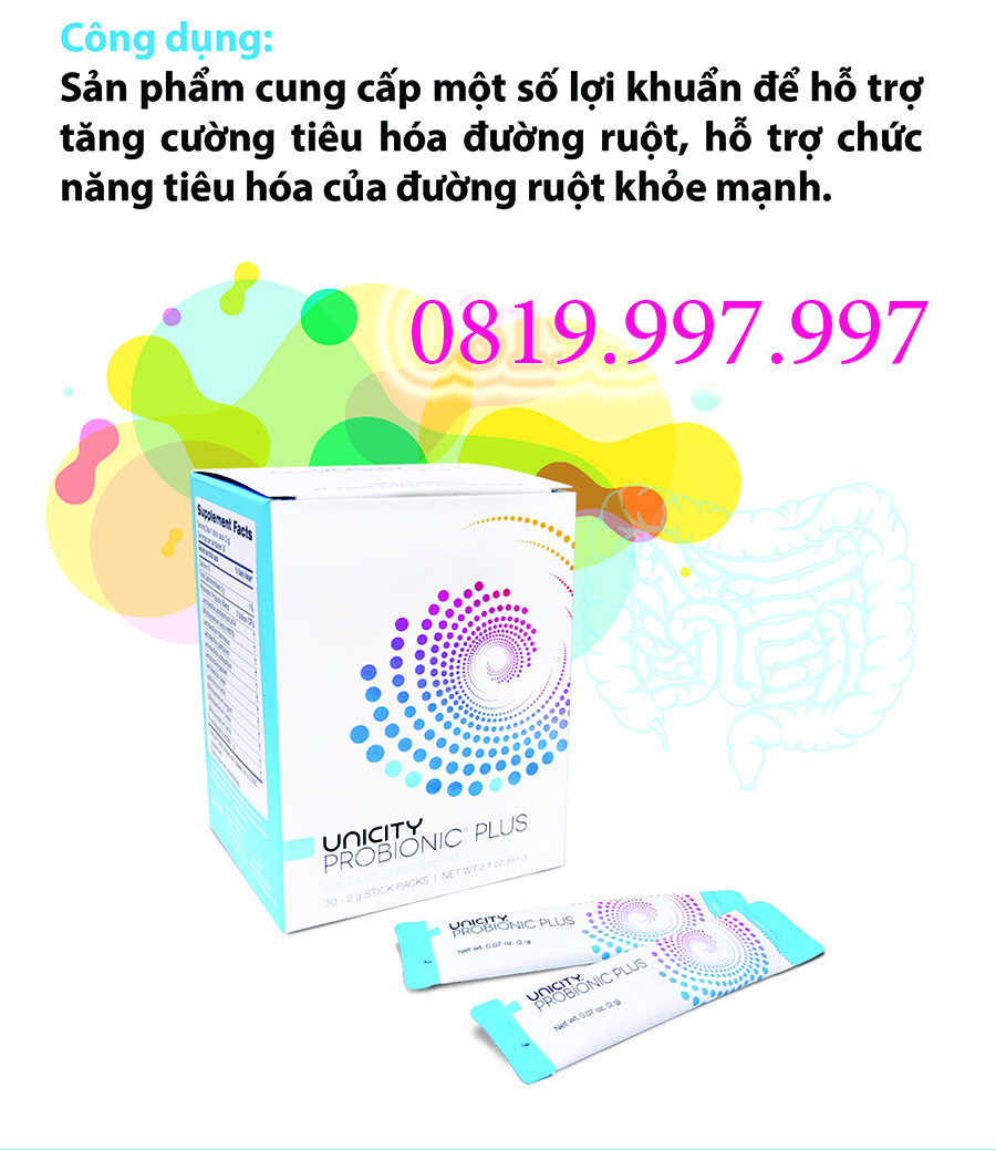 – Probionic unicity là một sản phẩm bổ sung lợi khuẩn tốt nhất cho ruột và toàn bộ đường tiêu hóa. Giúp đường tiêu hóa khỏe mạnh và không còn triệu chứng ruột kích thích khi ăn những đồ ăn lạ và khó tiêu.